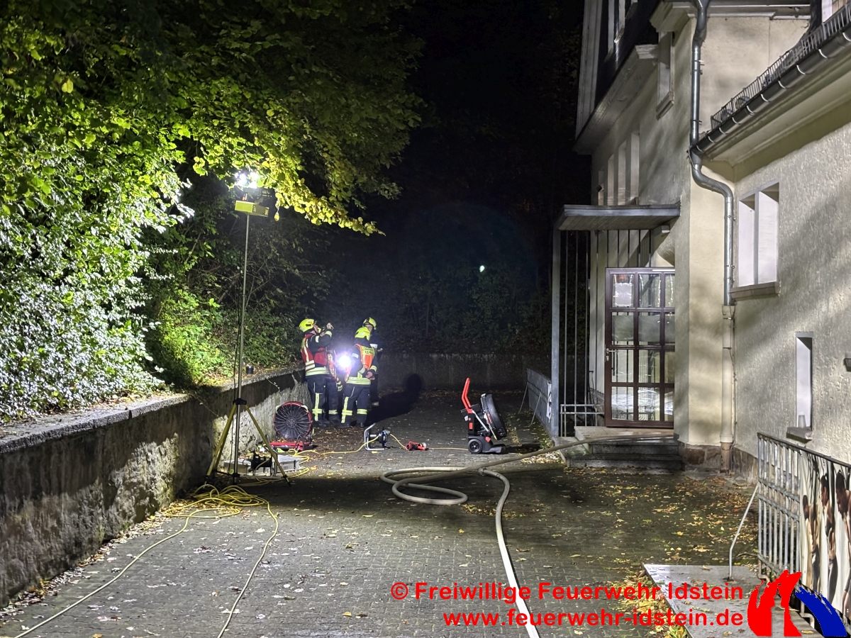 Es war zu einem Brand in den Räumlichkeiten einer Sportstätte gekommen. Es brannte im Küchenbereich des Gebäudes und Rauch hatte sich im gesamten Gebäude verteilt. Ein Trupp unter schwerem Atemschutz nahm einen Löschangriff durch ein Fenster vor, ein weiterer Trupp übernahm anschließend im Inneren die Nachlöscharbeiten. Um auszuschließen, dass noch Personen im Gebäude waren, gingen weitere Trupps im gesamten Gebäude vor und durchsuchten alle Räume. Parallel dazu wurde das Gebäude entraucht. Die Brandursachenermittlung ist Aufgabe der Polizei, verletzt wurde glücklicherweise niemand.