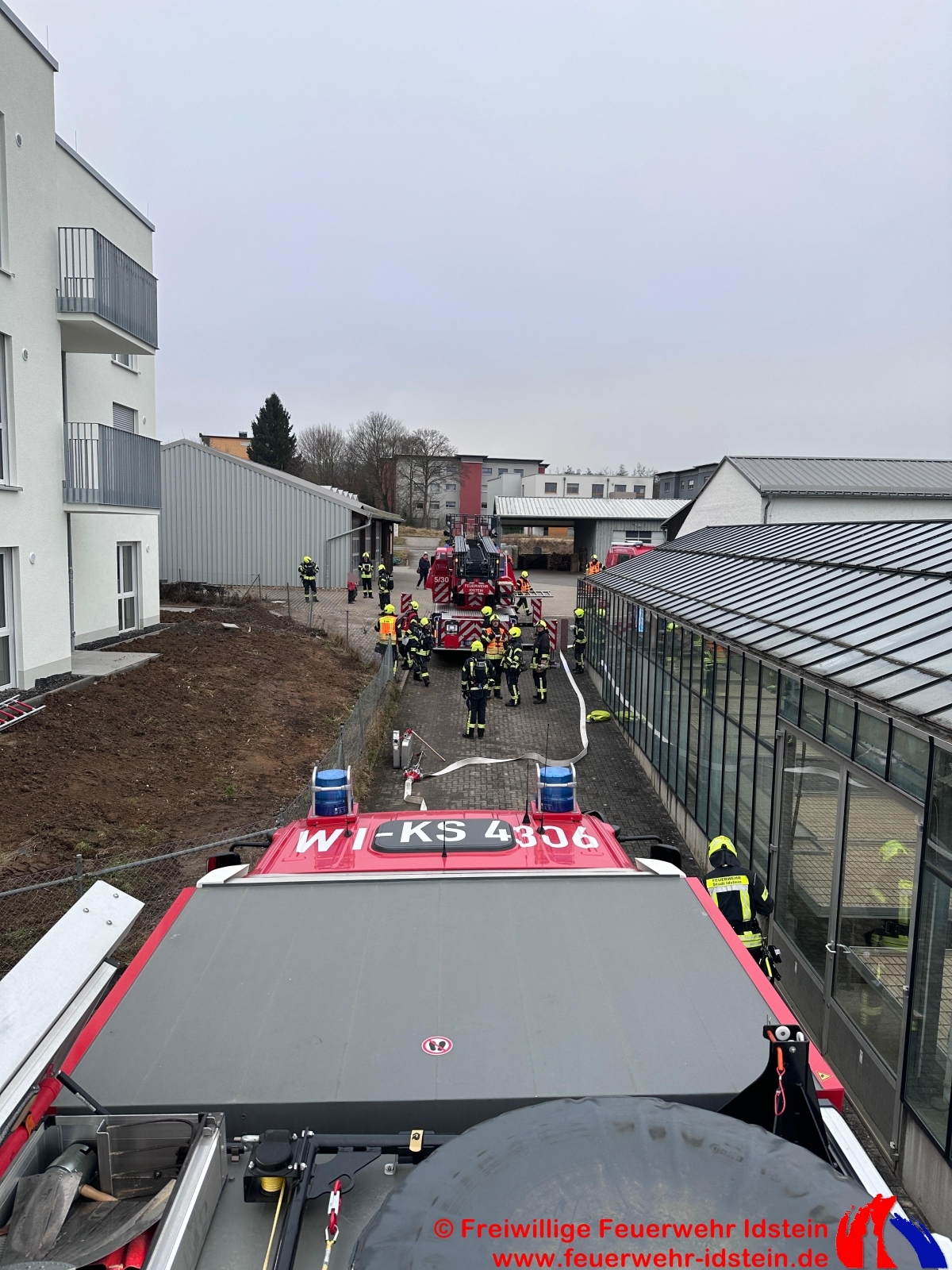 Vor Ort zeigte sich anhand weiterer bearbeiteter Fotos ein Küchenbrand im Bereich des Neubaus des Betreuten Wohnens der Vitos Teilhabe. Daher kam es zu einer angenommenen massiven Verrauchung im Gebäude.