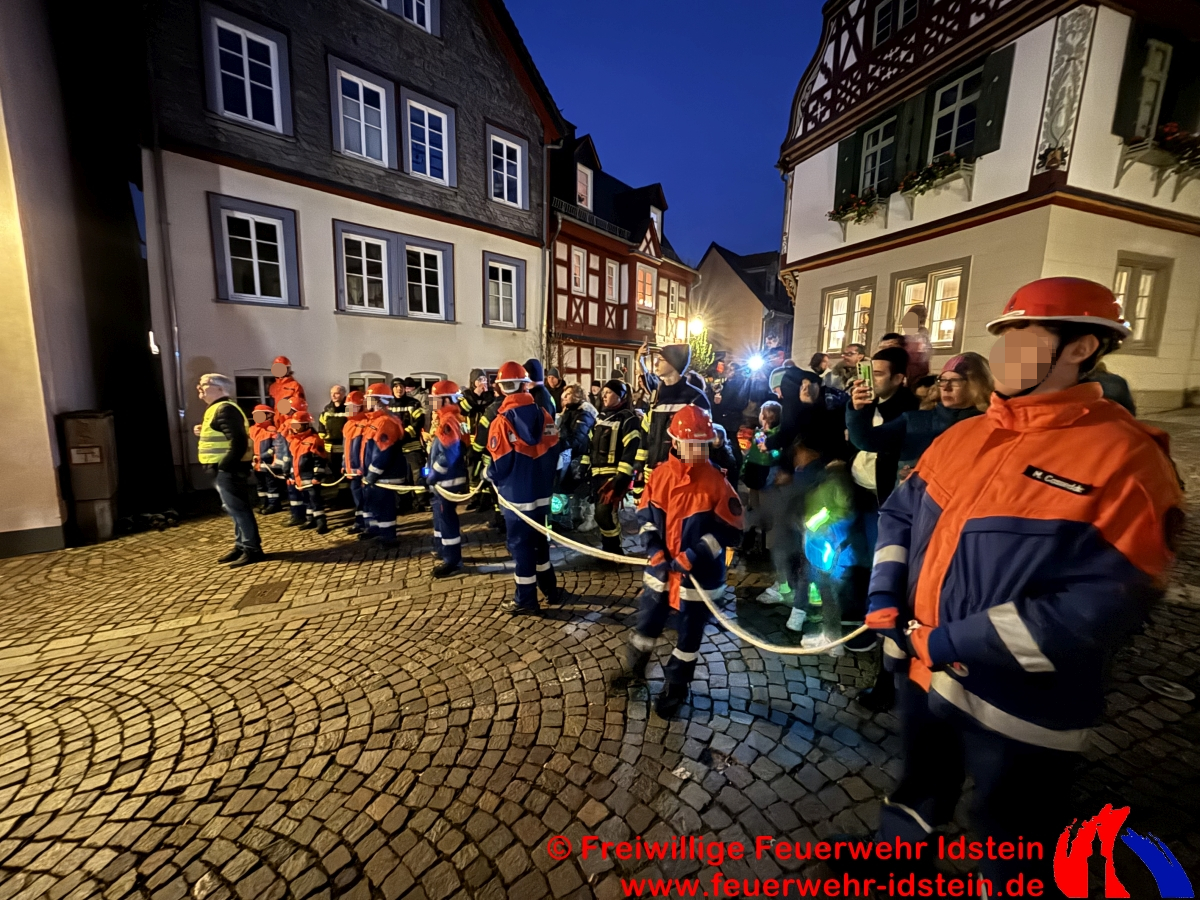 Da Pferde Fluchttiere sind, bedeutet dies enormen Stress für das Tier. Hier kommt die Jugendfeuerwehr ins Spiel. Damit die zahlreichen Personen, insbesondere die Kinder, dem Pferd nicht zu Nahe kommen und gar in den Ausschlagbereich geraten, sicherten die Jungs und Mädchen der Jugendfeuerwehr einen Umkreis um den Reiter. Als Hilfsmittel diente hier eine einfache Feuerwehrleine, die im Kreis um das Pferd gespannt wurde. Nach dem Durchschreiten der Menge, während des eigentlichen Umzugs bildeten die Jugendlichen eine Schutzzone hinter dem Reiter und sorgten so für einen sicheren Ablauf für alle Beteiligten.
